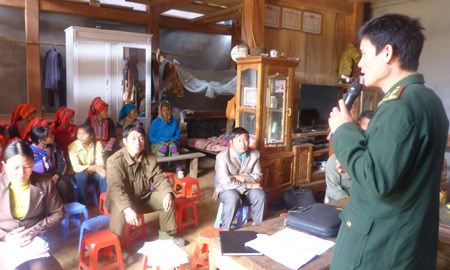 Cán bộ Đồn Biên phòng Bản Lầu tuyên truyền chủ trương, chính sách của Đảng, Nhà nước tới người dân trên địa bàn.