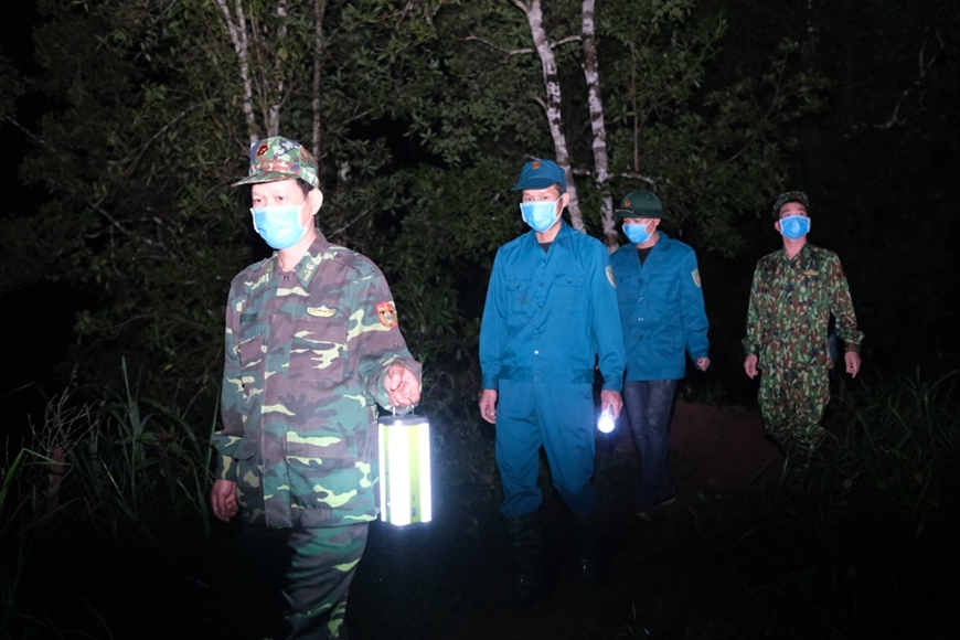 | Dân quân thường trực phối hợp với Bộ đội Biên phòng tuần tra biên giới trên địa bàn huyện Cao Lộc (Lạng Sơn). |