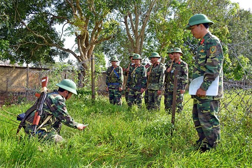 Học viên Trường Quân sự Quân khu 9 trong bài kiểm tra kết thúc môn Vật cản nổ.