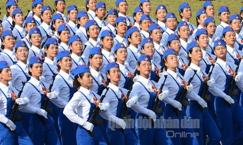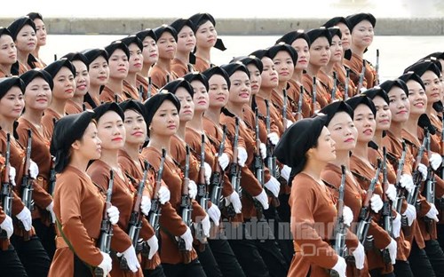 Khối nữ dân quân các dân tộc Việt Nam và nữ dân quân đồng bằng sông Hồng trong ngày hội non sông, ngày 2-9-2015.