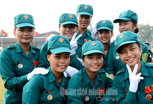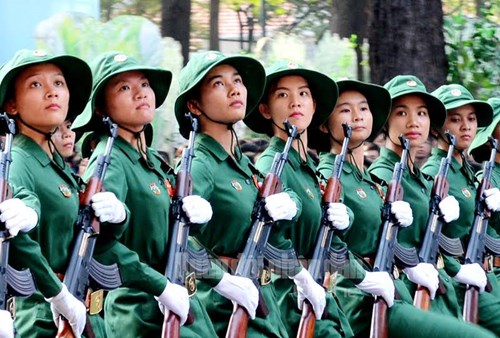 Khối nữ giải phóng quân miền Nam và nữ du kích miền Đông Nam bộ trong ngày 30-4-2015.