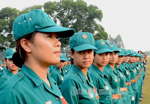 Các nữ dân quân khối đứng trước ngày 2-9-2015.