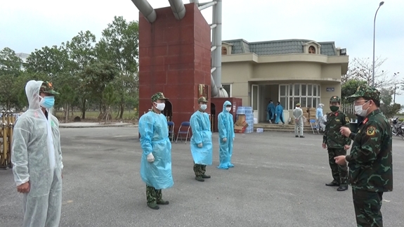 | Lãnh đạo Trường Quân sự Quân khu 3 kiểm tra cán bộ, học viên phối hợp tham gia cùng với lực lượng chức năng địa phương tại các điểm cách ly trên địa bàn thành phố Chí Linh. |