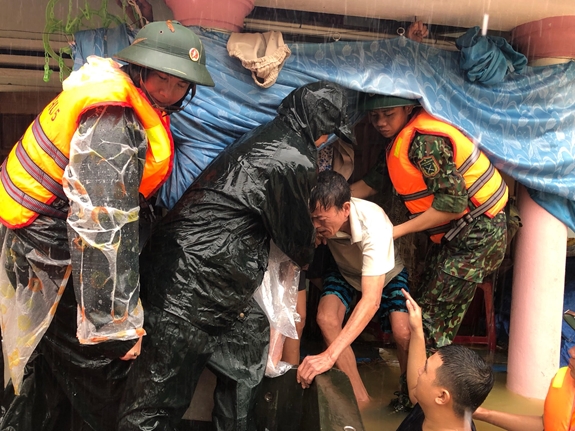 Thực hiện yêu cầu khẩn cấp của địa phương, 2 đội chuyên trách của Sư đoàn 315, được trang bị 2 xe, 2 ca nô với 30 cán bộ, chiến sĩ đã cơ động thực hiện nhiệm vụ tại các địa bàn xung yếu của tỉnh. Tại xã Tam An, huyện Phú Ninh, các mũi giúp dân của đơn vị tỏa ra các hướng tìm kiếm và kịp thời đưa 8 người dân đến nơi an toàn, trong đó có 2 người già, 1 sản phụ và 2 em nhỏ.