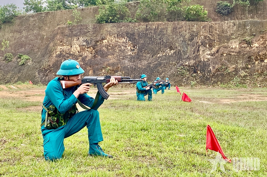 Song song với đó, công tác huấn luyện, sẵn sàng chiến đấu được triển khai nghiêm túc với phương châm “cơ bản, thiết thực, vững chắc”. Nội dung huấn luyện không chỉ dừng lại ở kỹ, chiến thuật bộ binh mà còn đi sâu rèn luyện kỹ năng xử lý các tình huống thực tiễn tại cơ sở như: Phòng, chống thiên tai, tìm kiếm cứu nạn và bảo đảm an ninh trật tự.