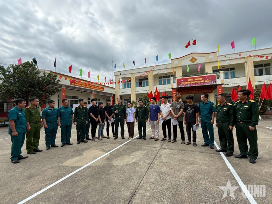 | Lãnh đạo Ban chỉ huy Phòng thủ khu vực 1 - Cẩm Lệ trò chuyện, động viên thanh niên địa phương tham gia khám tuyển nghĩa vụ quân sự. |