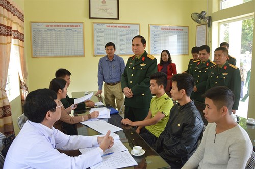 Lãnh đạo Bộ CHQS tỉnh Ninh Bình kiểm tra công tác khám tuyển NVQS năm 2017 ở TP Tam Điệp. Ảnh: Hồng Nam.