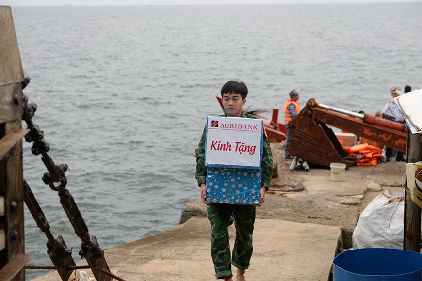 | Hàng Tết, quà tặng được chuyển lên đảo. |