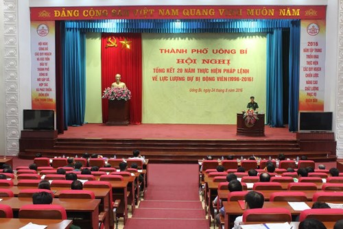 Sáng 24-8, Thành phố Uông Bí (Quảng Ninh) tổ chức Hội nghị tổng kết 20 năm thực hiện Pháp lệnh Dự bị động viên (DBĐV) giai đoạn (1996-2016).