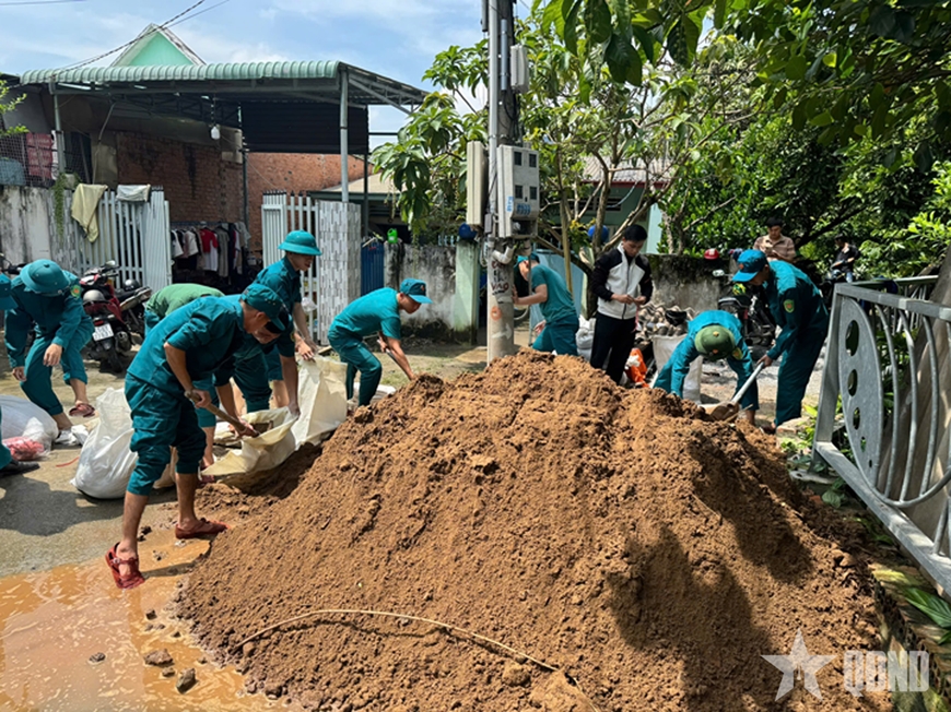 Tại các phường Bến Cát, Thủ Dầu Một (TP Hồ Chí Minh), cấp ủy và chính quyền các địa phương đã huy động lực lượng kiểm tra hệ thống thoát nước, bờ bao, cống rạch có nguy cơ tràn, kịp thời khắc phục điểm sạt lở, hư hỏng trong đợt mưa lớn kết hợp triều cường cuối tháng 10-2025. Cán bộ, chiến sĩ còn đến từng hộ dân hỗ trợ kê cao tài sản, gia cố nhà cửa và chuẩn bị phương tiện ứng phó khi mưa lớn, ngập sâu xảy ra.