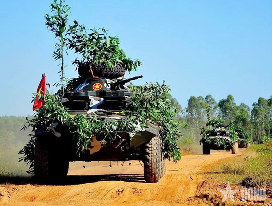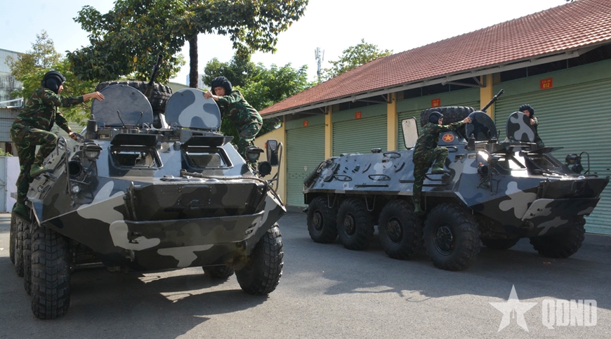 Xe thiết giáp Bộ tư lệnh TP Hồ Chí Minh cơ động trong diễn tập. |