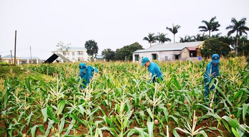 Sau những giờ luyện tập căng thẳng, cán bộ, chiến sĩ dân quân lại cùng nhau tăng gia sản xuất.