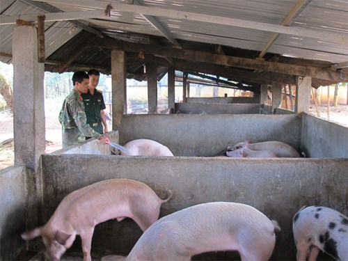 Chăn nuôi heo ở Đại đội 1.