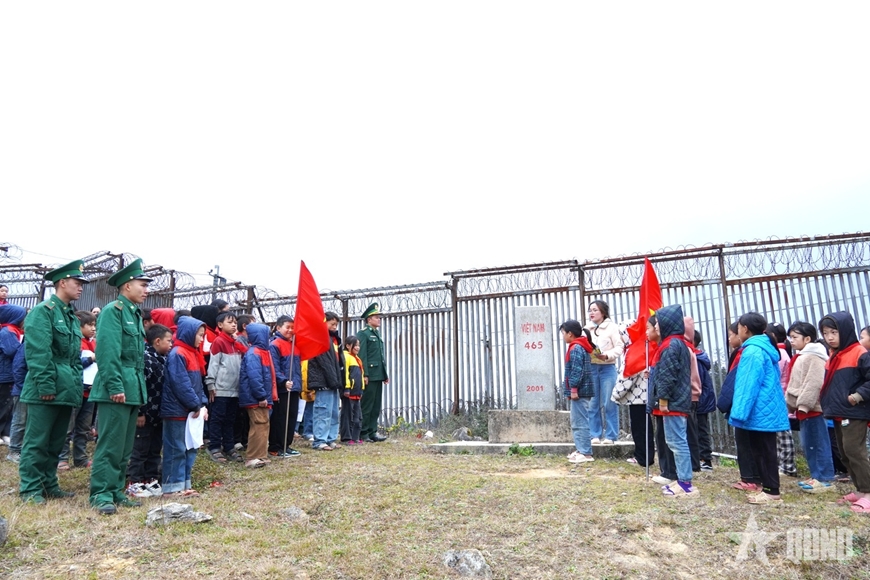 | Đồn Biên phòng Cửa khẩu Săm Pun phối hợp với các trường học trên địa bàn tổ chức “Tiết học biên cương”, góp phần bồi đắp ý thức chủ quyền cho học sinh vùng biên. |