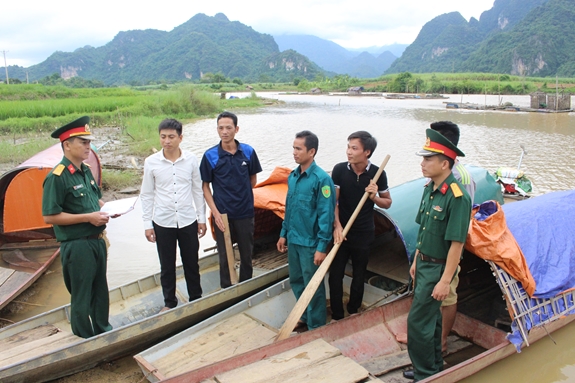 Cán bộ, nhân viên Ban CHQS huyện Bá Thước tuyên truyền Luật Bảo vệ môi trường cho bà con nuôi cá lồng trên sông Mã.