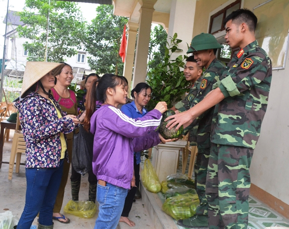 Bà con nhân dân xã Sơn Lâm (Hương sơn, Hà Tĩnh) tặng lương thực, thực phẩm cho cán bô, chiến sĩ Trung đoàn 335, Sư đoàn 324. |