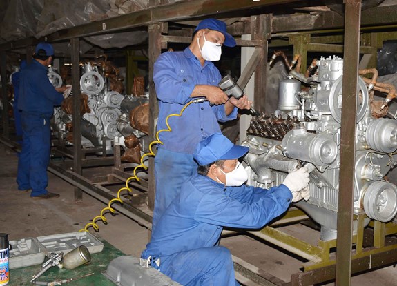 Đoàn viên công đoàn Kho J106, Cục Xe-Máy, Tổng cục Kỹ thuật bảo dưỡng động cơ xe ô tô.
