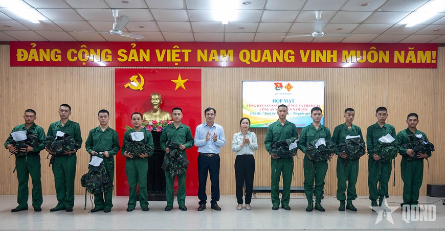 | Cấp quân trang cho thanh niên chuẩn bị nhập ngũ. |