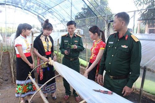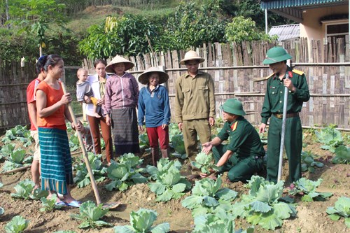 Cán bộ, nhân viên Đoàn KT-QP4 hướng dẫn kỹ thuật trồng rau sạch cho bà con xã Nậm Giải (Quế Phong, Nghệ An).