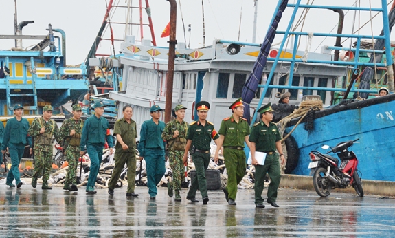 Dân quân TP Vũng Tàu (Bà Rịa-Vũng Tàu) phối hợp cùng các lực lượng tuần tra cảng biển.