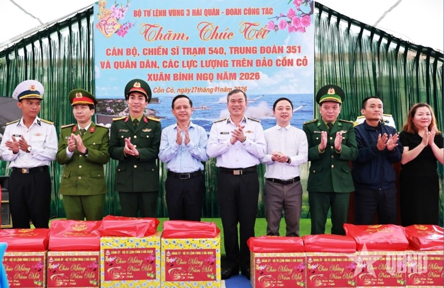 Trao đổi với chúng tôi, Chuẩn đô đốc Nguyễn Đăng Tiến, Bí thư Đảng ủy, Chính ủy Vùng 3 Hải quân, cho biết: “Chuyến thăm, chúc Tết tại các đặc khu Cồn Cỏ, Lý Sơn là minh chứng sinh động về mối quan hệ đoàn kết, gắn bó keo sơn giữa cấp ủy, chính quyền, LLVT và nhân dân các địa phương, cơ quan, tổ chức, doanh nghiệp với bộ đội hải quân nói chung và quân, dân hai đặc khu nói riêng. Chuyến đi là sự quan tâm sâu sắc, thường xuyên của Đảng, Nhà nước, Bộ Quốc phòng, Quân chủng Hải quân; là sự đồng hành trách nhiệm của cấp ủy, chính quyền các địa phương; là tấm lòng sẻ chia, nghĩa tình của các cơ quan, tổ chức, doanh nghiệp, cá nhân trong và ngoài Quân đội. Đó chính là sự nối dài của nghĩa tình đất liền với biển, đảo, đồng thời là lời khẳng định: Dù trong bất cứ hoàn cảnh nào, biển, đảo không bao giờ đơn độc, bởi phía sau mỗi con sóng là ý chí của cả một dân tộc. Những phần quà mang theo trong chuyến đi này không chỉ là vật chất mà là niềm tin, là hơi ấm của đất liền, là lời nhắn gửi: “Sau lưng người lính là Tổ quốc, trước mặt là biển trời quê hương”.