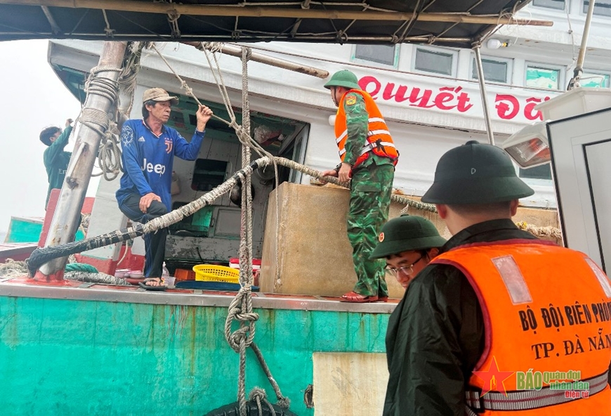 | Bộ đội Biên phòng TP Đà Nẵng thông báo, hướng dẫn tàu thuyền tránh bão số 6 (Nesat). |