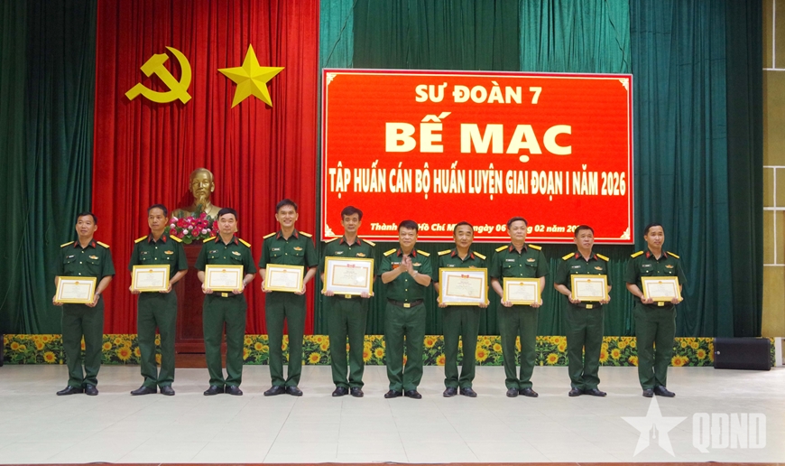 Tại buổi bế mạc, Sư đoàn 7 đã trao giấy khen tặng 1 tập thể và 7 cá nhân có thành tích tốt trong tổ chức tập huấn cán bộ giai đoạn 1 năm 2026.