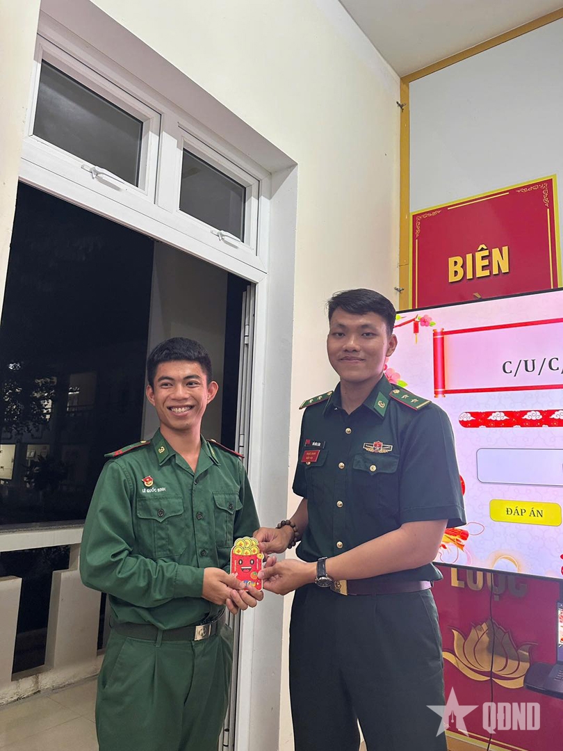 Trước đó trong đêm Giao thừa, chỉ huy đơn vị đã lì xì tới cán bộ, chiến sĩ. Mỗi phong bao xanh, đỏ là lời động viên tinh thần, lời chúc sức khỏe, hạnh phúc và nhắc nhở bộ đội bước vào năm mới với khí thế mới, quyết tâm mới.