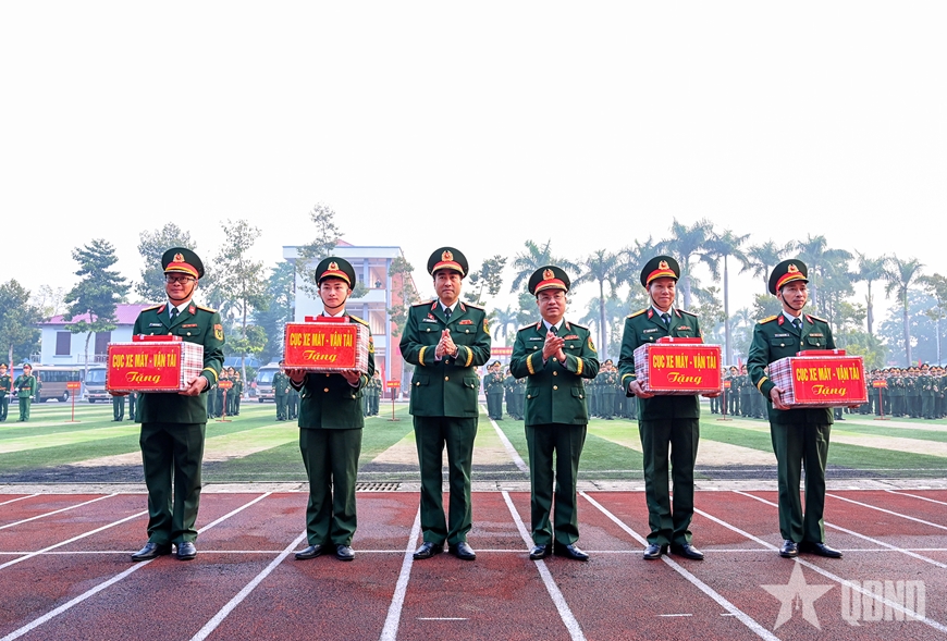 Đại biểu dự lễ xuất quân thực hiện nhiệm vụ đưa, đón đại biểu dự Đại hội XIV của Đảng của Cục Xe máy-Vận tải (Tổng cục Hậu cần-Kỹ thuật).