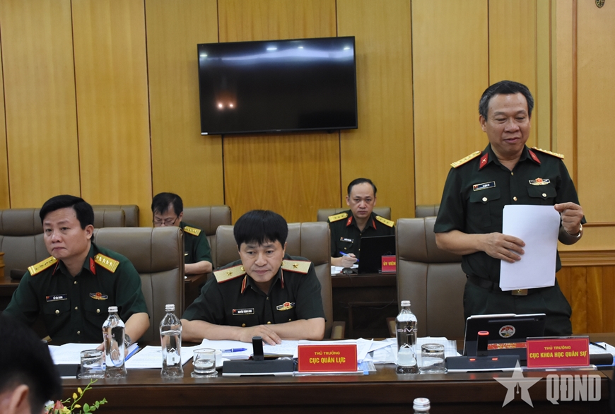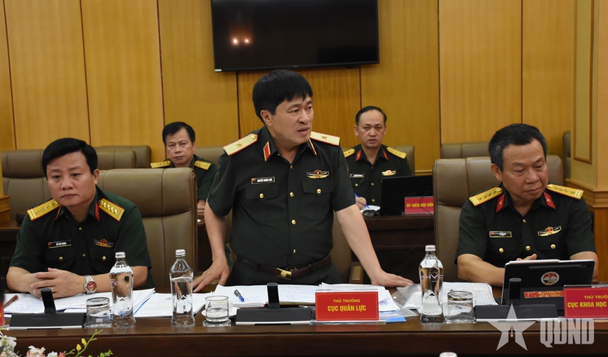 | Đại biểu Cục Khoa học Quân sự phát biểu tại hội nghị. |