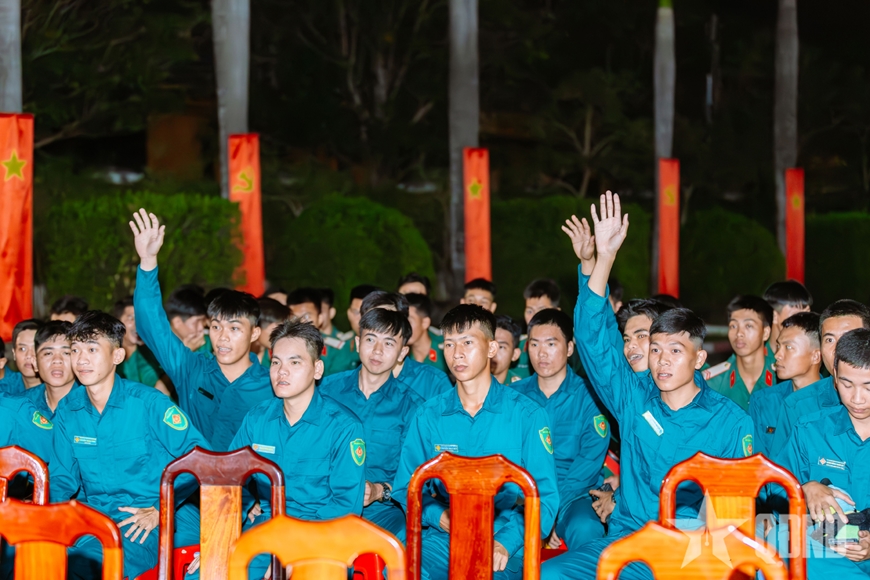 | Các chiến sĩ dân quân hào hứng xung phong tham gia chương trình. |