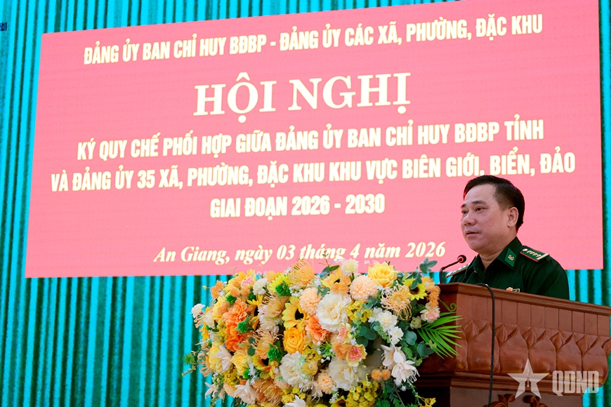 Chiều 3-4, Đảng ủy Ban Chỉ huy Bộ đội Biên phòng tỉnh An Giang tổ chức Hội nghị ký kết quy chế phối hợp với Đảng ủy 35 xã, phường, đặc khu, khu vực biên giới, biển, đảo trên địa bàn tỉnh, giai đoạn 2026 - 2030.