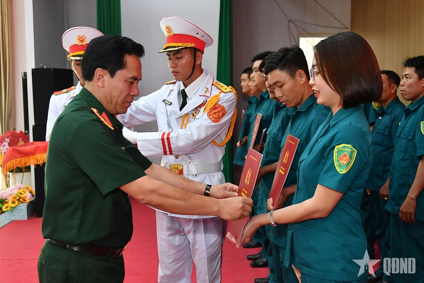 Phát biểu tại buổi lễ, Đại tá Huỳnh Văn Khởi nhấn mạnh, các đồng chí được gọi phục vụ tại ngũ đợt này đều đã được đào tạo, bồi dưỡng qua thực tiễn công tác ở cơ sở, có phẩm chất chính trị vững vàng, tinh thần trách nhiệm cao. Đồng chí yêu cầu mỗi cán bộ xác định rõ vinh dự và trách nhiệm; nhanh chóng ổn định tư tưởng, sắp xếp công việc gia đình; chấp hành nghiêm kỷ luật Quân đội và quy định của đơn vị; tích cực học tập, rèn luyện, phát huy kinh nghiệm thực tiễn tại địa phương để hoàn thành tốt chức trách, nhiệm vụ được giao.