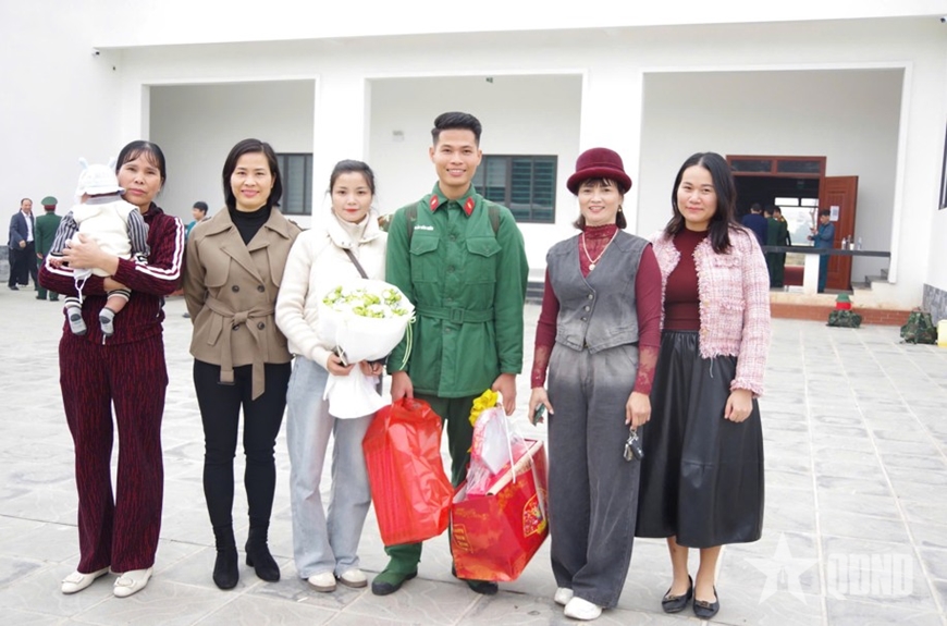 | Gia đình, người thân đến đón quân nhân hoàn thành nghĩa vụ quân sự. |
