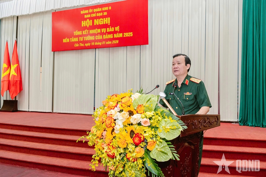 Chiều 16-1, Trung tướng Hồ Văn Thái, Bí thư Đảng ủy, Chính ủy Quân khu 9, Trưởng Ban Chỉ đạo 35 Quân khu chủ trì hội nghị tổng kết nhiệm vụ bảo vệ nền tảng tư tưởng của Đảng năm 2025.