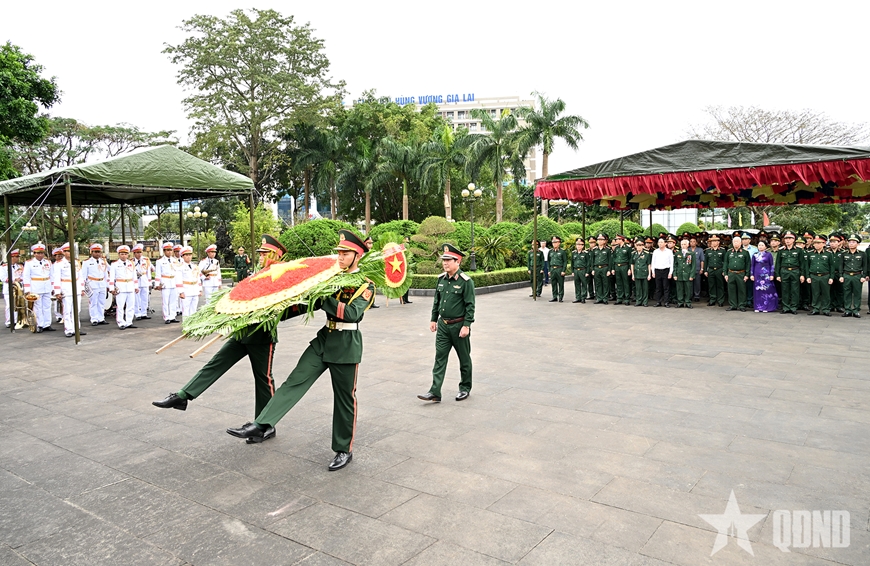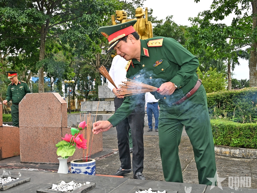 Tại Nghĩa trang Liệt sĩ tỉnh Gia Lai (phường Pleiku, tỉnh Gia Lai), Thượng tướng, TS Lê Huy Vịnh và các đại biểu đã thành kính dâng những nén hương thơm, tỏ lòng biết ơn sâu sắc đến công lao, sự hy sinh của các Anh hùng liệt sĩ cho sự nghiệp đấu tranh giải phóng dân tộc, bảo vệ Tổ quốc.
