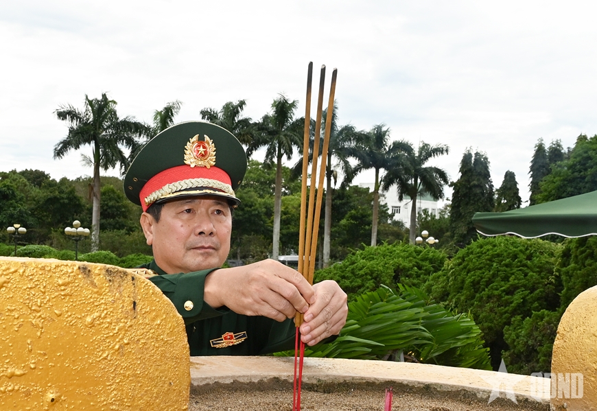 | Thượng tướng, TS Lê Huy Vịnh thắp hương lên mộ các Anh hùng liệt sĩ. |