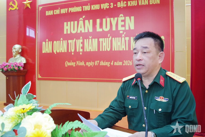 Phát biểu khai mạc, Đại tá Nguyễn Tiến Vinh, Chỉ huy trưởng Ban Chỉ huy PTKV 3 - Đặc khu Vân Đồn nhấn mạnh: Đợt huấn luyện nhằm trang bị cho lực lượng dân quân những kiến thức cơ bản về nhiệm vụ quốc phòng, quân sự địa phương; nâng cao nhận thức về âm mưu, thủ đoạn “diễn biến hòa bình”, bạo loạn lật đổ của các thế lực thù địch. Đồng thời rèn luyện kỹ năng, nâng cao khả năng sẵn sàng chiến đấu, đáp ứng yêu cầu nhiệm vụ trong tình hình mới.