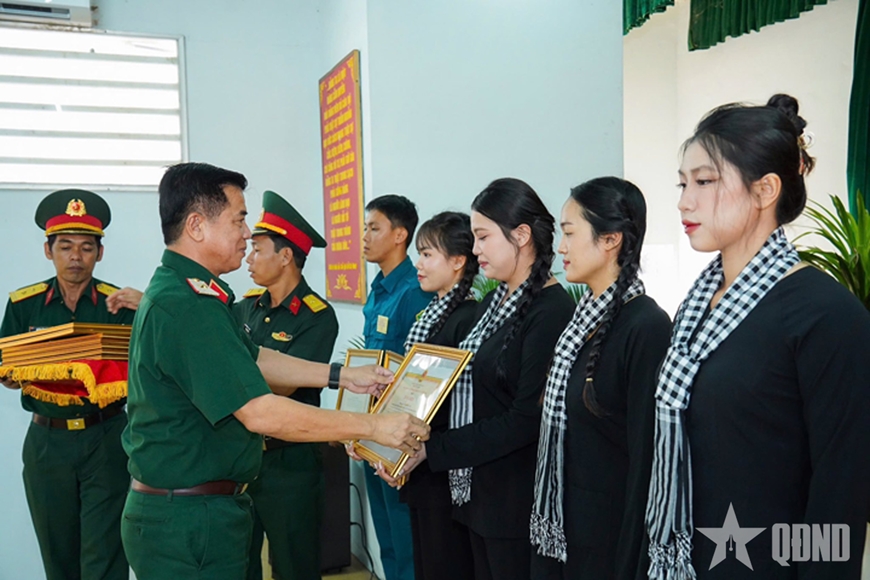 Thừa ủy quyền của Thủ trưởng Bộ Tổng Tham mưu, Thiếu tướng Phạm Văn Rậm trao Bằng khen tặng các cá nhân.