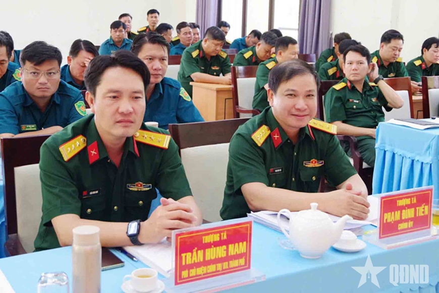 Thượng tá Trần Hùng Nam, Phó chủ nhiệm Chính trị Bộ tư lệnh TP Hồ Chí Minh dự và chỉ đạo hội nghị. Đại tá Hồ Tấn Trường, Phó bí thư Đảng ủy, Chỉ huy trưởng Ban chỉ huy Phòng thủ khu vực 4 - Nhà Bè chủ trì hội nghị.