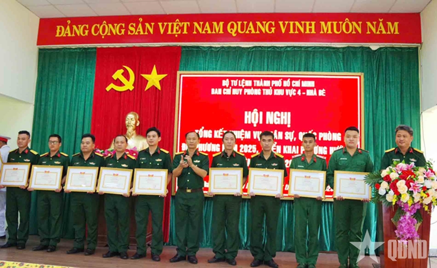 Năm 2025, Ban chỉ huy Phòng thủ khu vực 4 - Nhà Bè triển khai và hoàn thành toàn diện các nhiệm vụ quân sự, quốc phòng. Đơn vị duy trì nghiêm chế độ trực sẵn sàng chiến đấu; tổ chức huấn luyện đúng kế hoạch, an toàn. Lực lượng dân quân tự vệ, dự bị động viên được củng cố theo hướng hùng hậu, vững mạnh, rộng khắp.