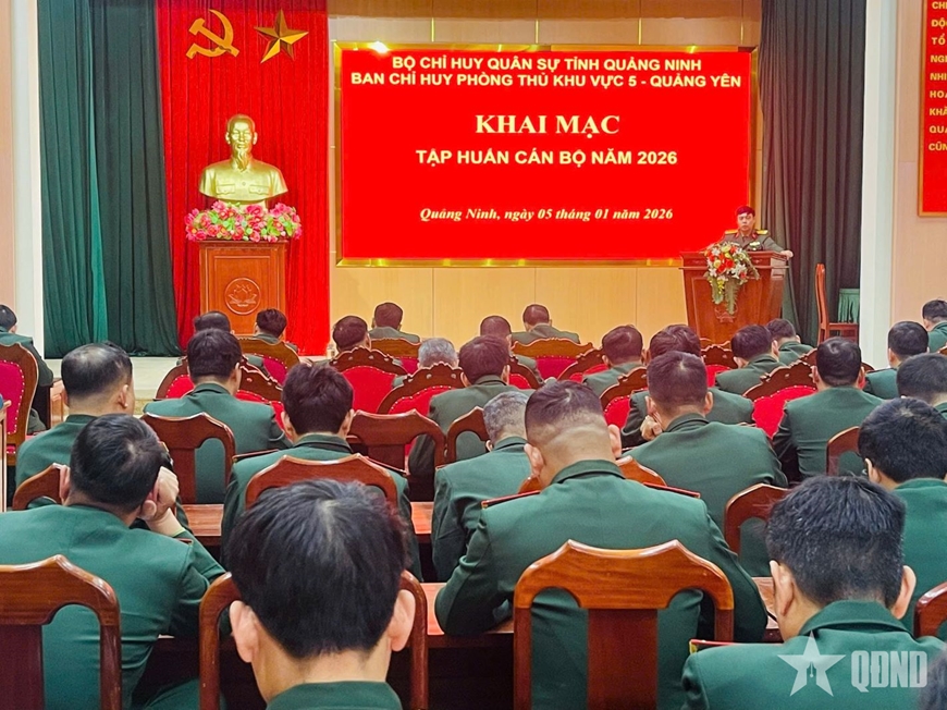 Sáng 5-1, Ban chỉ huy Phòng thủ khu vực (PTKV) 5 - Quảng Yên, Bộ CHQS tỉnh Quảng Ninh tổ chức khai mạc tập huấn cán bộ năm 2026. Thượng tá Bùi Duy Tuấn, Chỉ huy trưởng Ban chỉ huy PTKV chủ trì khai mạc, dự khai mạc có Thượng tá Đỗ Xuân Cảnh, Bí thư Đảng ủy, Chính ủy Ban Chỉ huy PTKV, cùng dự của các đồng chí trong Đảng ủy, Ban chỉ huy PTKV, chỉ huy các phòng và các đồng chí cán bộ lớp tập huấn.