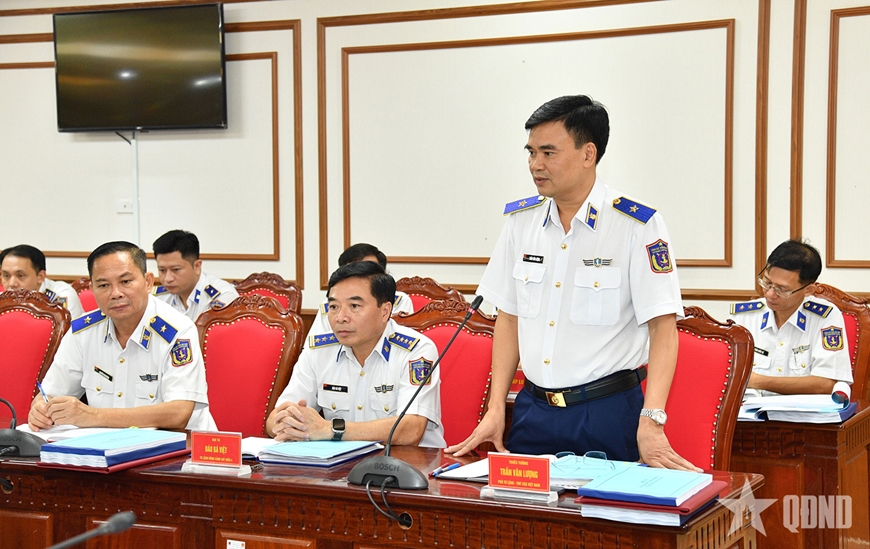 | Thiếu tướng Trần Văn Lượng, Phó tư lệnh - Tham mưu trưởng Cảnh sát biển Việt Nam phát biểu ý kiến tại hội nghị.  |