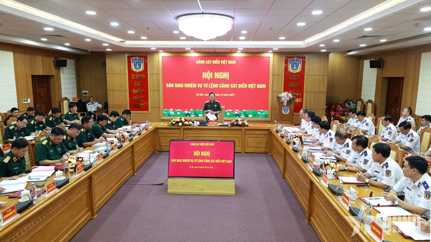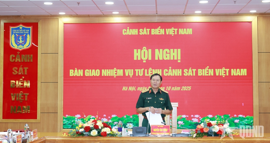 Thực hiện Quyết định số 2110/QĐ-TTg ngày 22-9-2025 của Thủ tướng Chính phủ bổ nhiệm Trung tướng Lê Quang Đạo giữ chức Phó tổng Tham mưu trưởng QĐND Việt Nam; Quyết định số 2089/QĐ-TTg ngày 18-9-2025 của Thủ tướng Chính phủ bổ nhiệm Thiếu tướng Lê Đình Cường giữ chức Tư lệnh Cảnh sát biển Việt Nam. Tại hội nghị, Trung tướng Lê Quang Đạo đã bàn giao chức trách, nhiệm vụ Tư lệnh Cảnh sát biển Việt Nam cho Thiếu tướng Lê Đình Cường.