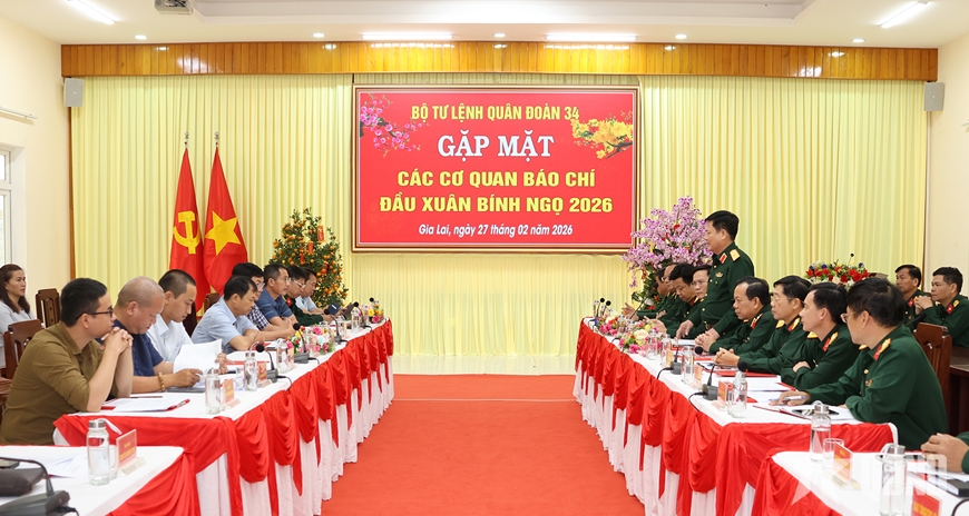 Phát biểu tại buổi gặp mặt, Thiếu tướng Nguyễn Trần Long cho biết, năm 2025, dưới sự lãnh đạo, chỉ đạo trực tiếp của Quân ủy Trung ương, Bộ Quốc phòng; các cơ quan chức năng của Bộ Quốc phòng; cùng với sự phối hợp nhịp nhàng của cấp ủy, chính quyền, nhân dân và các cơ quan báo chí Trung ương, địa phương trên địa bàn, Quân đoàn 34 đã quán triệt sâu sắc đường lối, chủ trương, chính sách của Đảng, Nhà nước, các nghị quyết, chỉ thị của Quân ủy Trung ương, Bộ Quốc phòng; hoàn thành tốt các nhiệm vụ, có nhiều nhiệm vụ hoàn thành xuất sắc.