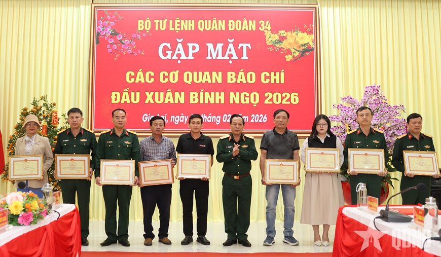 Dịp này, Quân đoàn 34 đã trao bằng khen tặng 5 tập thể, 13 cá nhân có thành tích xuất sắc trong phối hợp tuyên truyền năm 2025.
