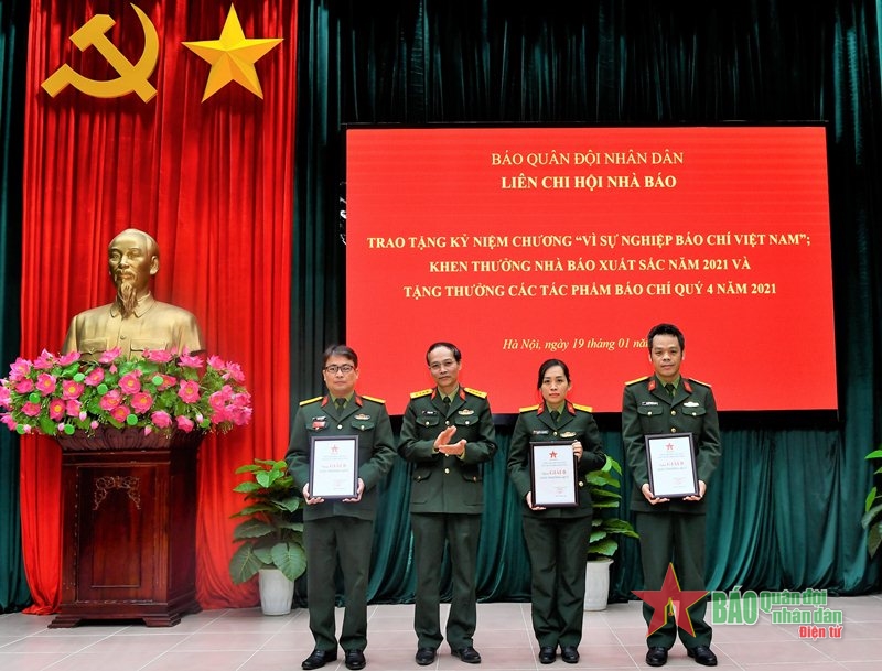 * Cũng tại buổi lễ, Ban Chấp hành Liên chi hội Nhà báo Báo Quân đội nhân dân cũng tặng thưởng các 13 tác phẩm xuất sắc quý IV năm 2021.