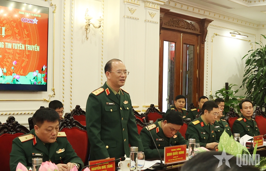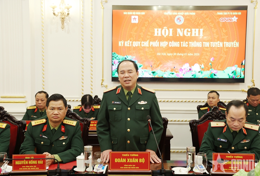 Phát biểu tại hội nghị, Thiếu tướng Đoàn Xuân Bộ nhấn mạnh, hoạt động phối hợp công tác thông tin tuyên truyền giữa Tổng cục CNQP, Báo QĐND và Trung tâm PT-TH Quân đội cùng hướng tới mục tiêu chung là hoàn thành xuất sắc nhiệm vụ chính trị của 3 đơn vị.