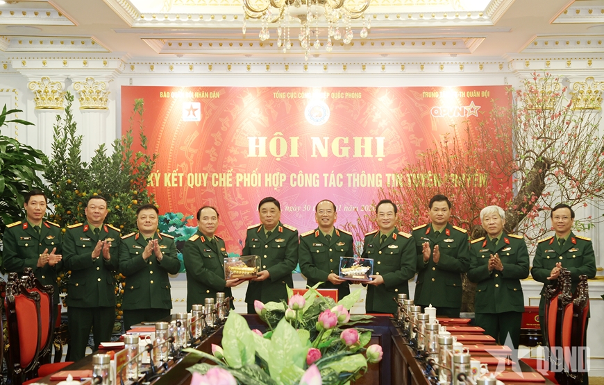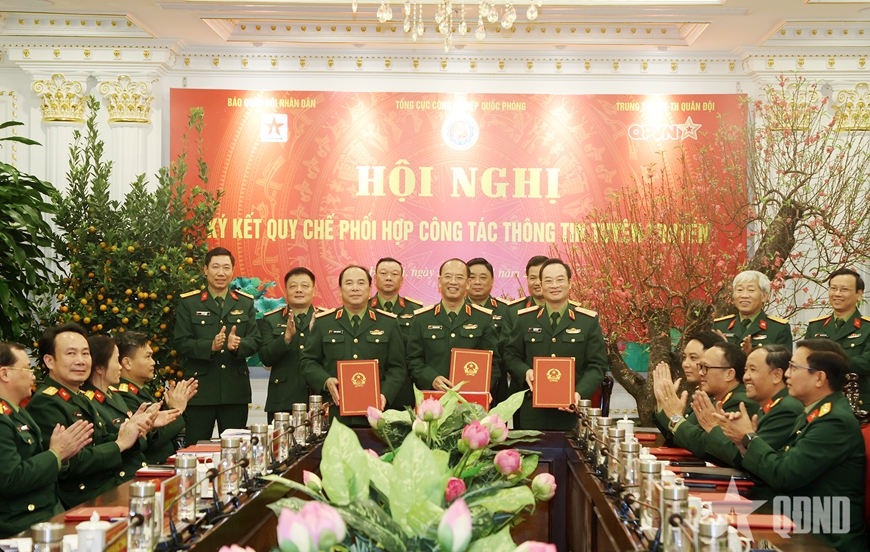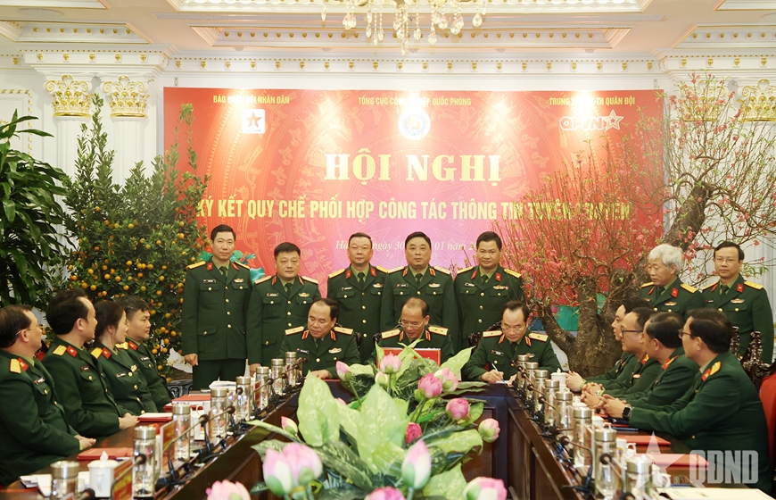 Tại hội nghị, lãnh đạo Tổng cục CNQP, Báo QĐND và Trung tâm PT-TH Quân đội đã ký kết Quy chế phối hợp công tác thông tin tuyên truyền.