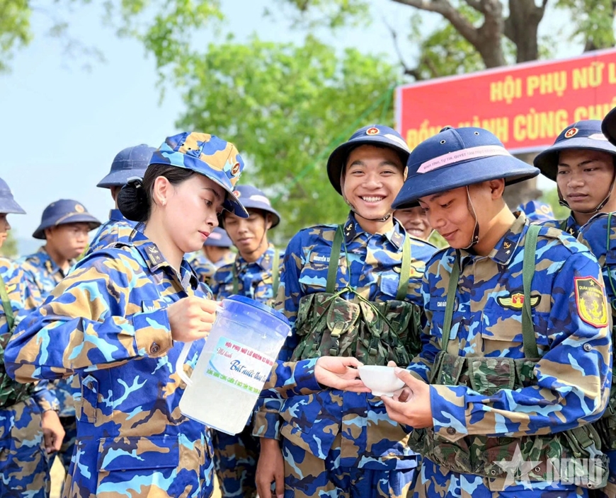 Sáng 22-4, Hội Phụ nữ Lữ đoàn Công binh 83 Hải quân (Quân chủng Hải quân) tổ chức chương trình “Bát nước thao trường” nhằm động viên cán bộ, chiến sĩ mới của Tiểu đoàn 885 đang thực hiện nhiệm vụ huấn luyện.